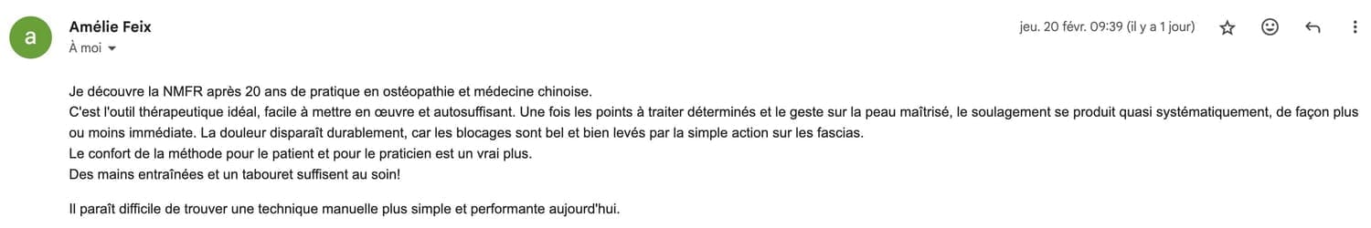💬 Retours de patients après une prise en charge réalisée par des thérapeutes formés à la méthode :